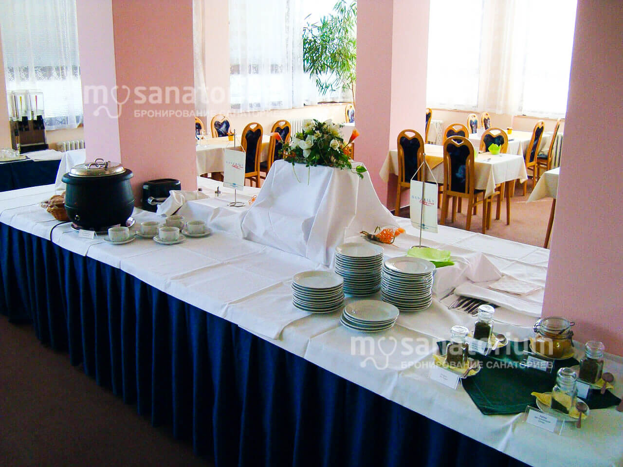Питание важная часть любого процесса оздоровления, в ресторане отеля для вас подготовлено сбалансированное меню, в основу которого входят блюда местной и международной кухни. Завтрак подается в форме «шведского стола», обед и ужин по выбору из меню. По назначению врача предоставляется диетическое питание.